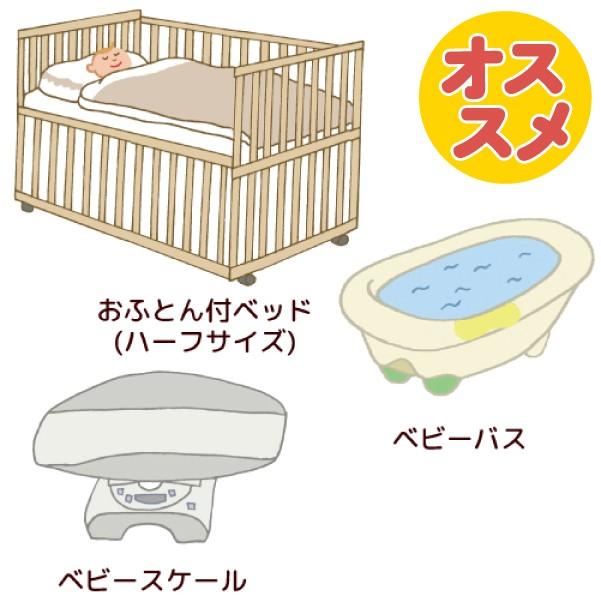おまかせ里帰りパック 1ヶ月レンタル (おふとん付きハーフサイズベビーベッド+ベビーバス+ベビースケール) 赤ちゃん